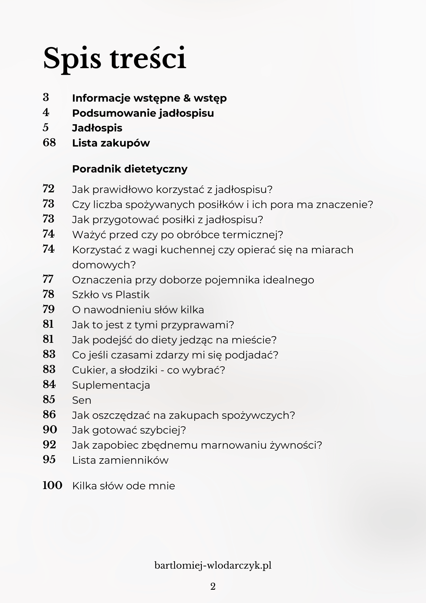 - Razem z jadłospisem otrzymasz listę zakupów, która znacznie oszczędzi Ci czas podczas zakupów!