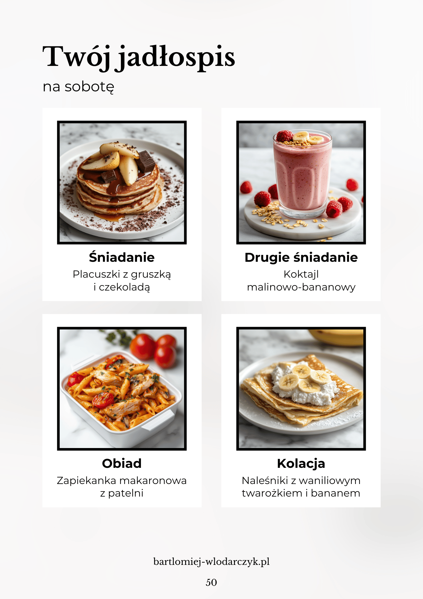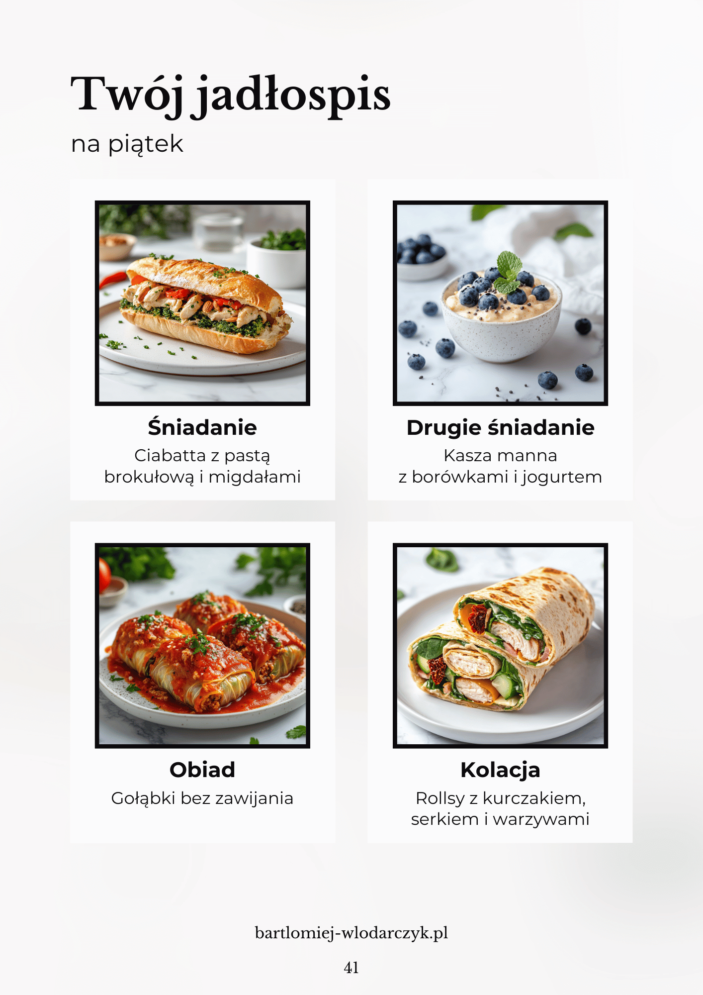 - 28 wyjątkowych posiłków, wraz ze zdjęciami, w formie 7-dniowej rozpiski, 4 posiłków dziennie